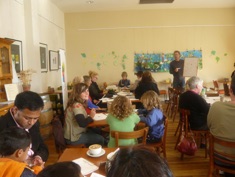 Children’s book illustrator, Pete Pascoe teaching everyone at the primaryschool STORY opening to draw cartoons.