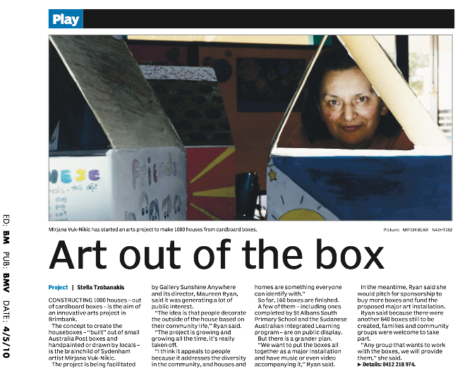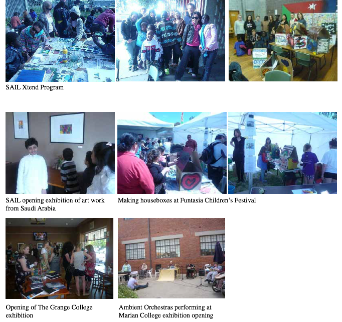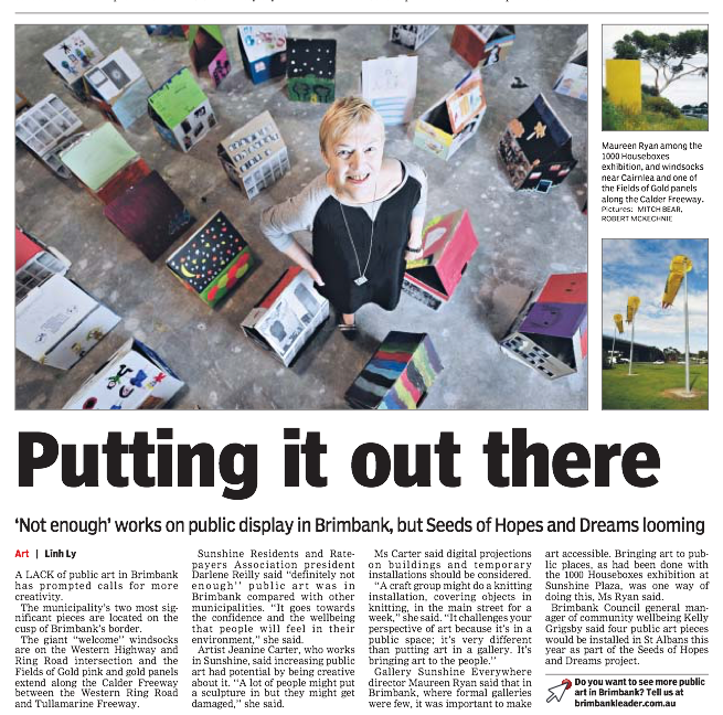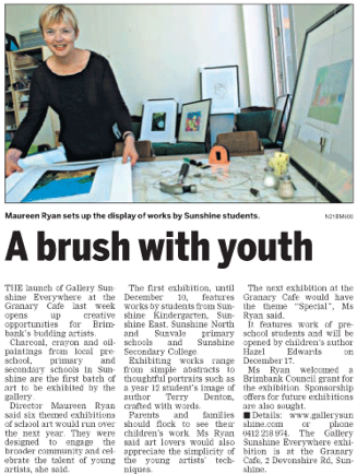 “>Thomas Carr Secondary College student, Dominic at the exhibition opening with his mother and his teacher, Melissa Murphy.